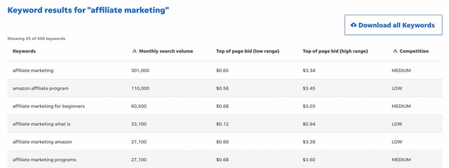 This tool will tell you how many people are looking for your specific topic or word this month. Let's see an example. I teach people how to start in affiliate marketing, and here are the results.